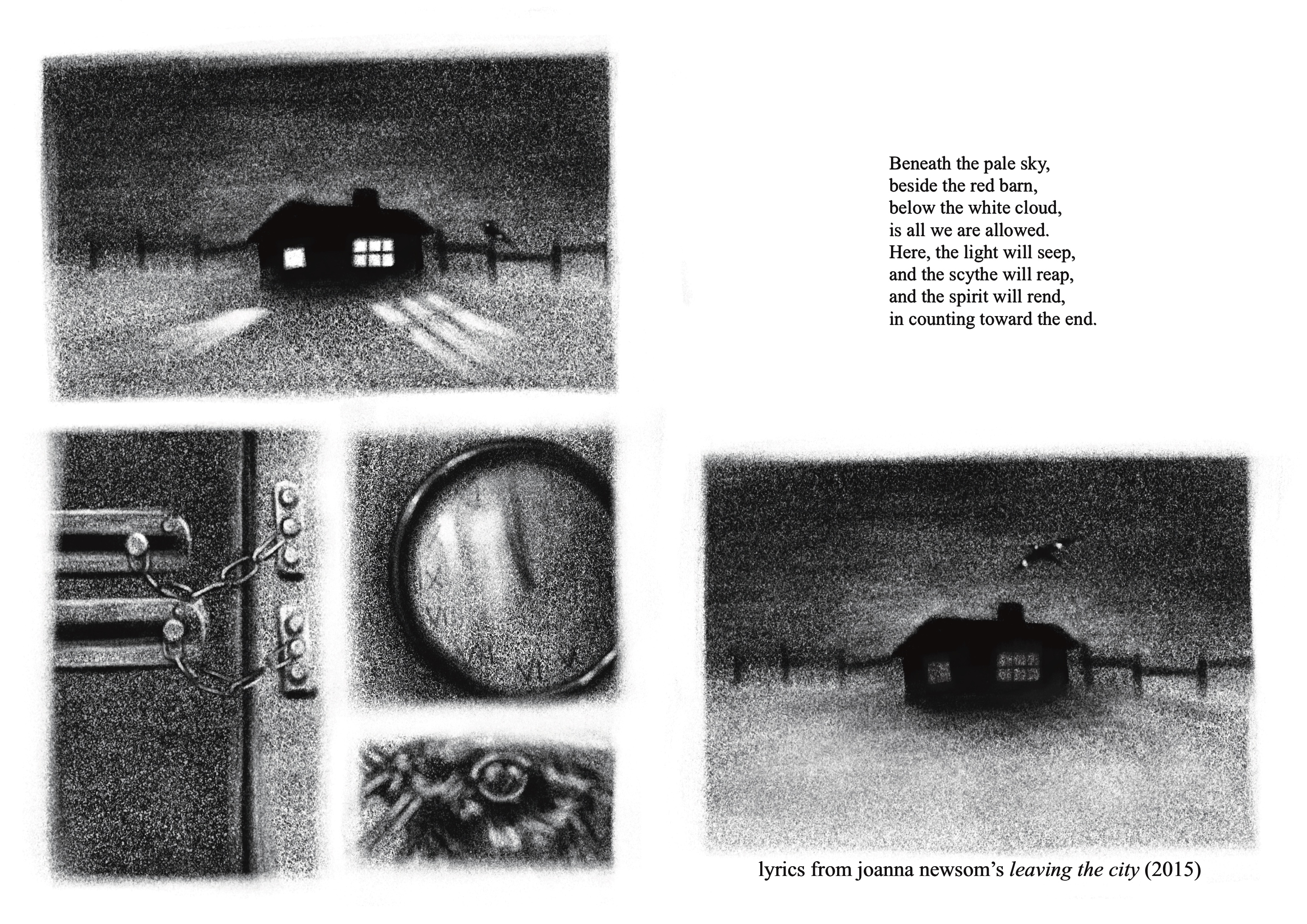 art zine time. i was listening to leaving the city one day and realized that the last verse is very scary! so I wanted to try and draw the scary. happy halloween be upon ye.